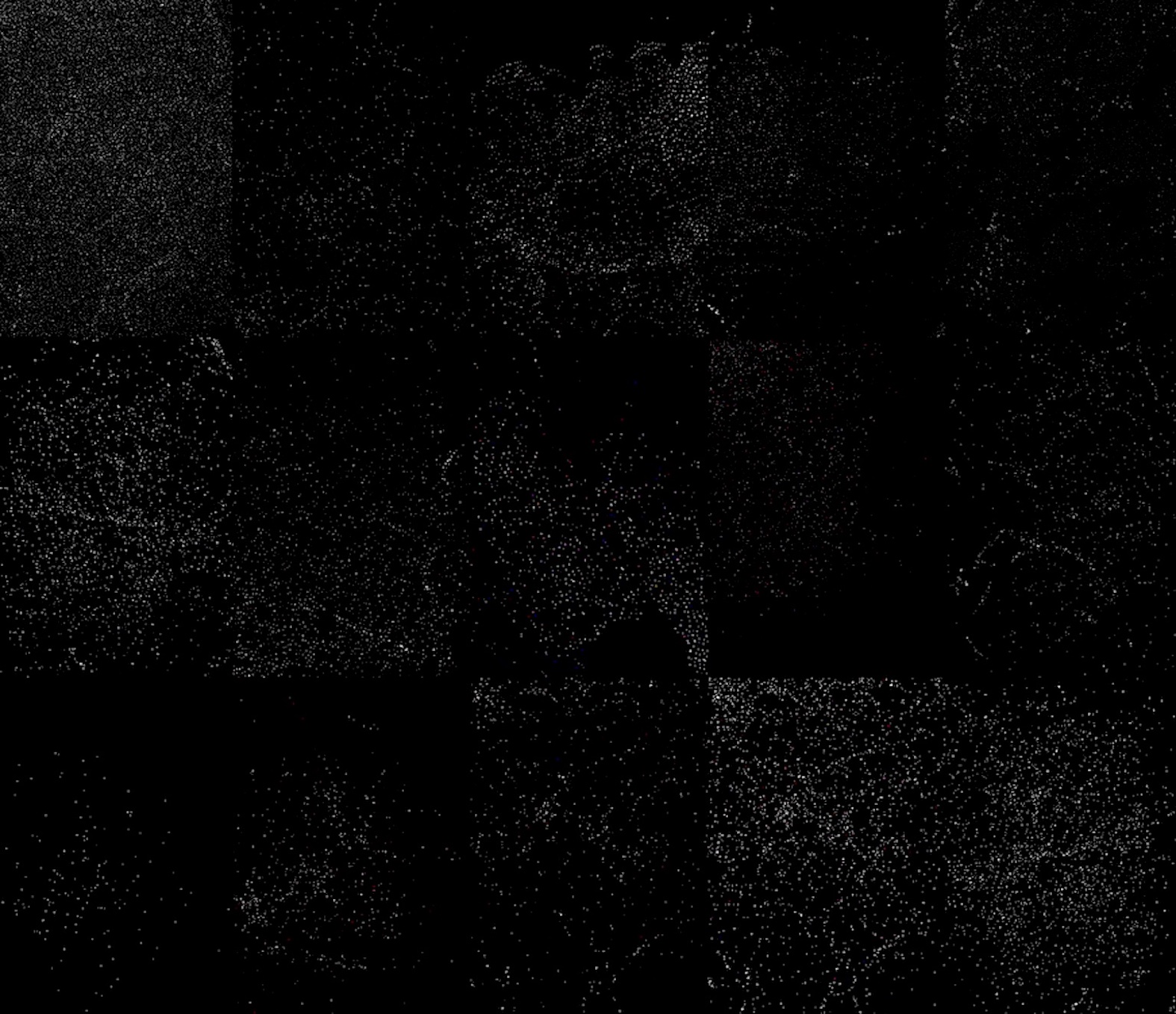 suite de marques, d’empreintes laissées par le passage d’un objet chimérique. Par porosité des couleurs, des tâches pigmentaires se déportent d’une toile à l’autre. Je photographie les passages multiples qui transforment ce qui est vu de l’humidification et disparait à l’assèchement. A l’horizontale (sol) cet écoulement opère à un drainage d’eau de pluie.